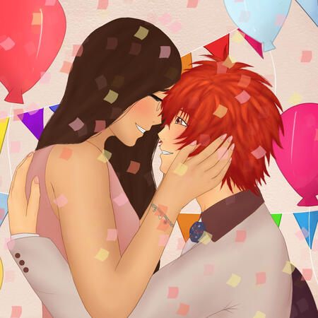 We went to the same high school and he was the first one to take an interest in me. He talked to me and although at first I was a little annoyed by his positive energy, I eventually came to like it. He convinces me to go to a music academy with him and we continue to develop our friendship, until eventually, we both realize that we love each other. It isn't until after school ends that we confess our feelings (with him confessing first) and become a couple. He works as an idol and I work as a composer, although tbh, I'm not sure if I'd say that right now in 2022 we're there yet, as irl, I just started my freshmen year of college and it would, again, feel weird sort of saying that I'm already working since I'm not so 😭 BUT IDK, I'm probably thinking about it too deeply 💀.Important dates